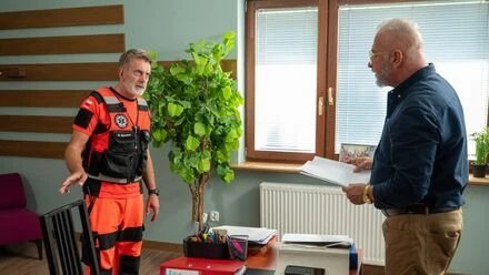 Ekipa doktora Lisickiego odpowiada z kolei na wezwanie do wypadku i trafia na dwóch pechowych kierowców, którzy ostro się kłócą i oskarżają wzajemnie o jazdę pod prąd. A po chwili jeden z mężczyzn ma objawy udaru. Tymczasem Lisicki senior zjawia się nagle w gabinecie Wiktora i żąda udostępnienia poufnych dokumentów oraz informacji o pracownikach bazy.
